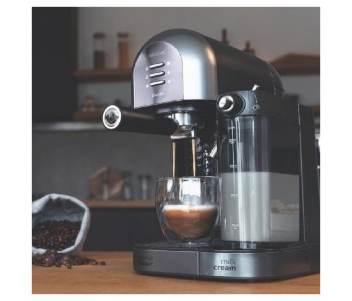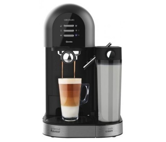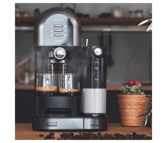 Cafetera semiautomática Power Instant-ccino 20 Chic Serie Nera de Cecoteccon tanque de leche para disfrutar de los mejores espressos y cappuccino con un toque. Es apta para café molido y café en cápsulas, se adapta a todos los gustos. Gracias a sus 20 bares consigue la mejor crema y el máximo aroma en cada café.