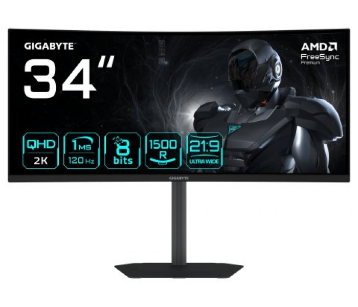 GIGABYTE GS34WQCA Monitor Gaming Curvo 34" WQHD – 3440 x 1440, 1500R, 120Hz, 1ms, 300 cd/m², FreeSync Premium, HDR Ready, HDMI 2.0, DisplayPort 1.4. (Espera 4 dias)