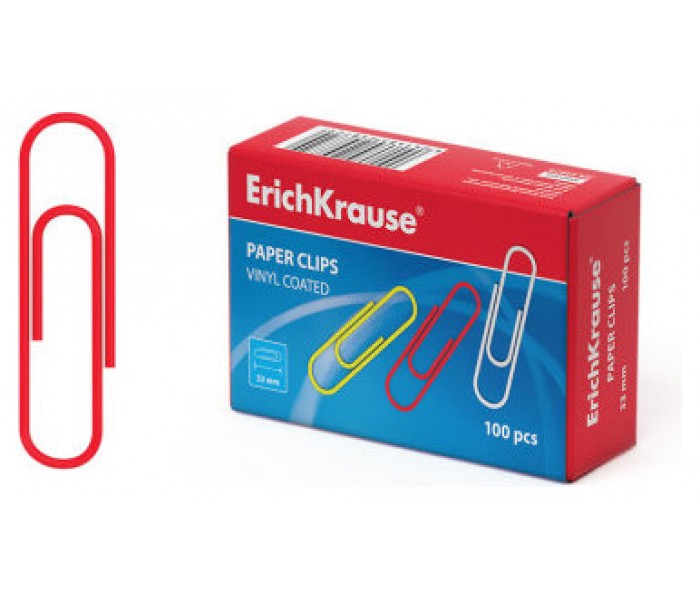 Clips con recubrimiento de plastico de colores ErichKrause®, 33mm (caja 100 uds) Clips recubiertos de vinilo hechos de alambre de acero de alta calidad con caracteristicas de resistencia mejoradas. Adecuado para uso multiple. Resistente a la corrosion. Papel sin manchas y sin aranazos.