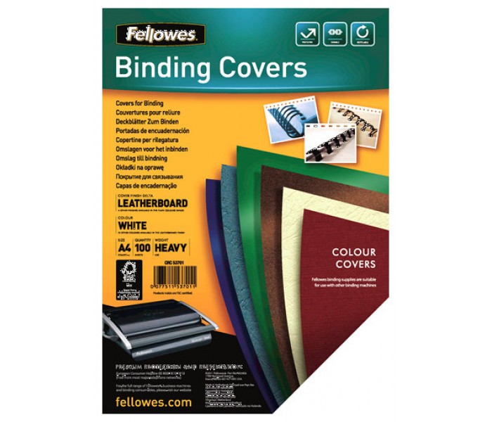 PACK 100 PORTADAS SIMIL PIEL A4 250 GR. BLANCO FELLOWES 5370104