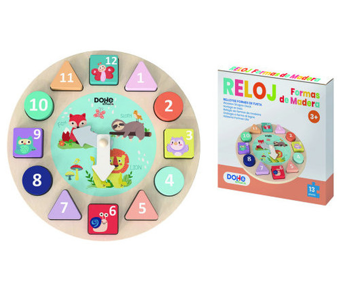 JUEGO EDUCATIVO DE DIFERENTES FORMAS GEOMÉTRICAS DE MADERA NATURAL, CON BORDES REDONDOS, SUAVE TACTO Y CON LLAMATIVOS COLORES, CON MOTIVO DE RELOJ. IDEAL PARA EJERCITAR LA COORDINACIÓN ENTRE OJO-MANO, ALENTANDO LA IMAGINACIÓN Y LA ESTIMULACIÓN VISUAL. ACTIVA LA HABILIDAD MANUAL PARA ENCAJAR Y CLASIFICAR SEGÚN LA FORMA EN SU LUGAR, IMPULSANDO EL APRENDIZAJE Y FOMENTANDO A LA VEZ EL RAZONAMIENTO. Y SOBRE TODO APRENDER JUGANDO Y DIVIRTIÉNDOSE.