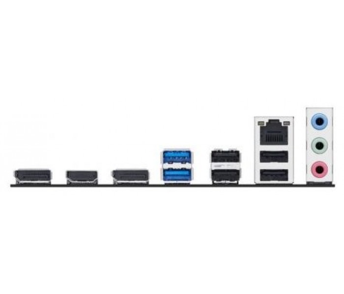 - Puertos E/S traseros: 2x USB 5 Gbps, 4x USB 2.0, 2x DisplayPort, 1x HDMI, 1x Ethernet 1Gb, 3x audio