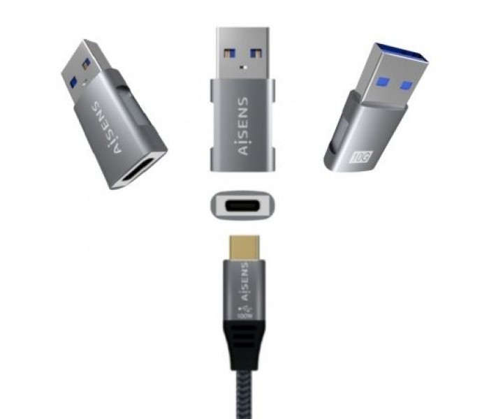 Mini Adaptador AISENS USB 3.2 GEN2 10G 3A, Tipo USB-C/H-A/M, Gris
