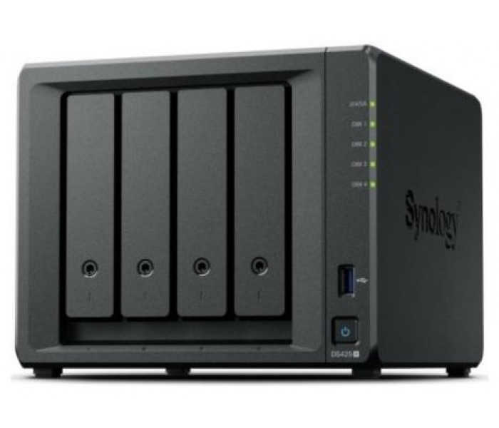 El DS425+ cuenta con redes integradas de 2.5GbE y admite tanto SSD SATA como HDD en bahías internas de 2.5"/3.5", así como unidades M.2 NVMe a través de ranuras M.2 para uso de caché