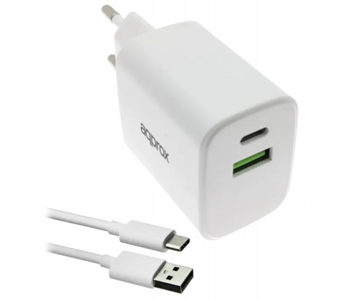 CARGADOR USB DE VIAJE/PARED 1xUSB/USB-C + CABLE USB-A A USB-C 35W BLANCO APPROX (Espera 4 dias)