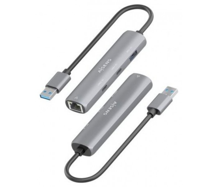 ASUC-4P036-GR – USB3.0 Dock USB-A a Ethernet Gigabit + HUB 2xUSB-C+1xUSB-A, Gris, 15cm