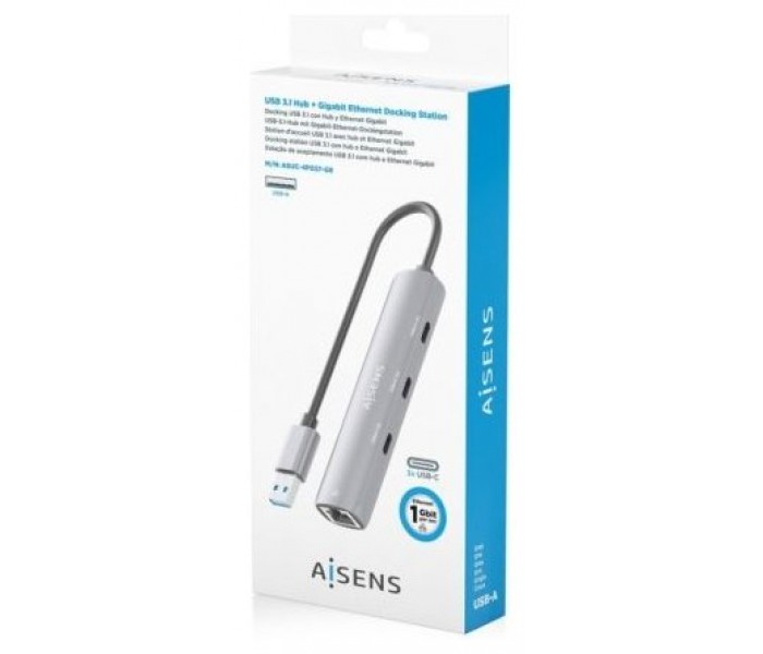 Hub USB Aisens ASUC-4P034-GR/ 3xUSB/ 1xRJ45/ GrisASUC-4P034-GR – USB3.0 Dock USB-A a Ethernet Gigabi..