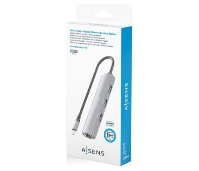 ASUC-4P038-GR – Dock USB-C a Ethernet Gigabit + HUB 3xUSB-A, Gris, 15cm