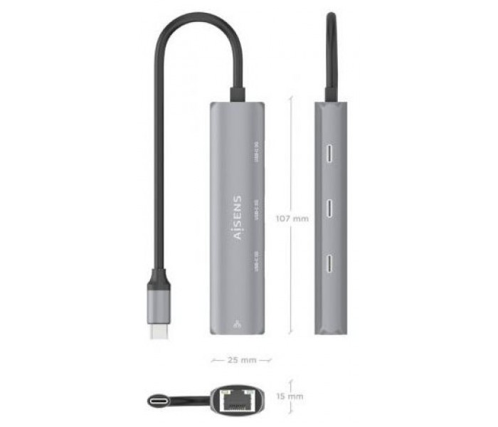Hub USB Tipo-C Aisens ASUC-4P041-GR