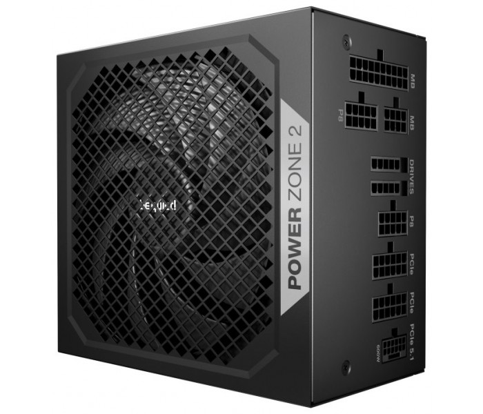 be quiet! POWER ZONE 2 1000W. Potencia total: 1000 W, Voltaje de entrada AC: 100 - 240 V, Máxima energía: 1070 W. Alimentador de energía para tarjeta madre: 20+4 pin ATX, Longitud del cable de alimentación de la placa base: 60 cm, Longitud del cable de alimentación SATA: 550,700,850,1000 mm. Utilizar con: PC, Factor de forma de fuente de alimentación (PSU): ATX, Certificación 80 PLUS: 80 PLUS Platinum. Color del producto: Negro, Tipo de enfriamiento: Activo, Diámetro de ventilador: 14 cm. Certificados de conformidad: BSMI, CB, CCC, CE, Comisión Federal de Comunicaciones (FCC) de Estados Unidos, RCM, RoHS, TÜV...