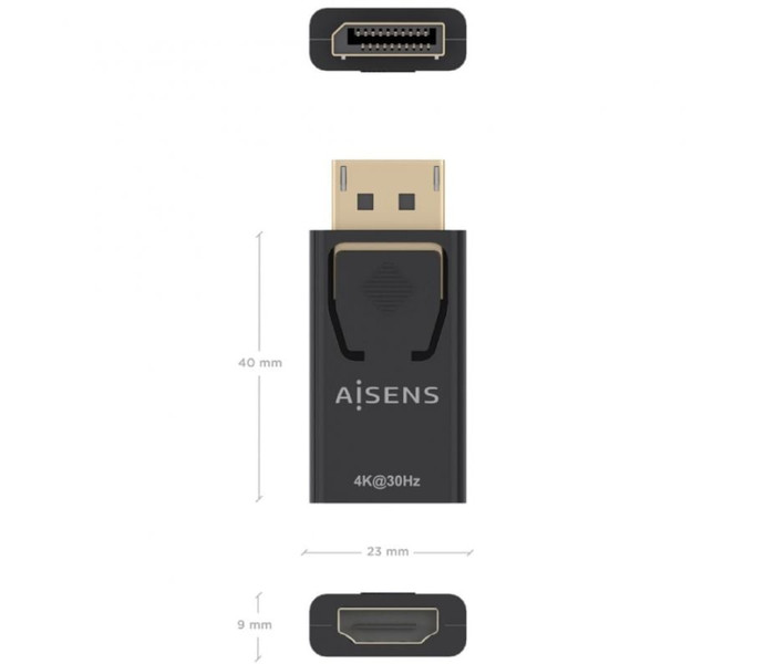 AISENS - CONVERSOR DISPLAYPORT A HDMI 4K@30HZ, DP/M-HDMI/H, NEGRO