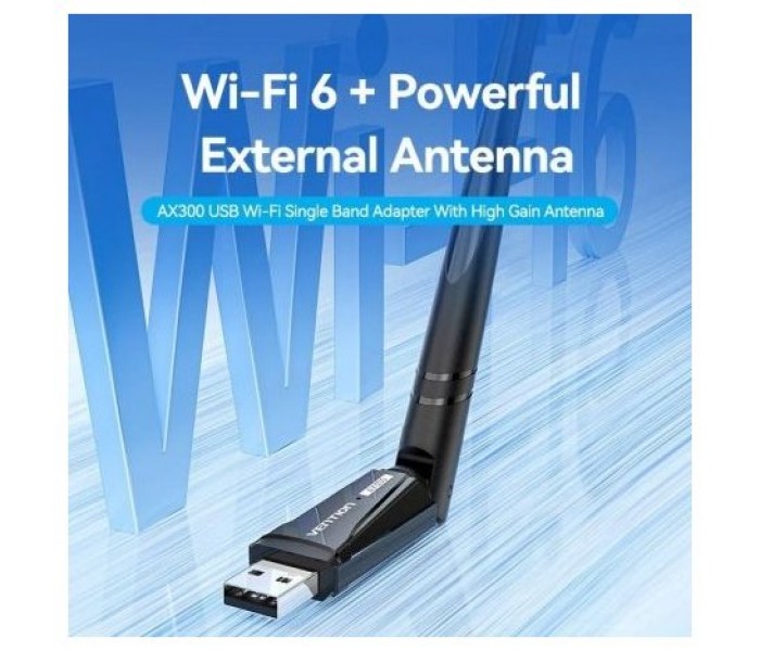 Vention Adaptador USB Wi-Fi AX300 de banda única con antena de alta ganancia, color negro