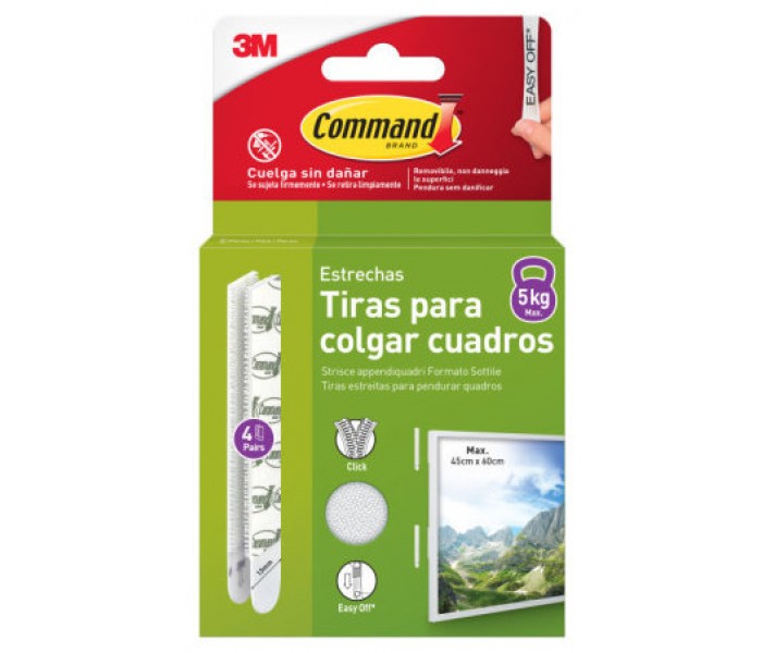 BLISTER TIRAS ADHESIVAS ESTRECHAS PARA CUADROS HASTA 5KG COMMAND 17207WHI-4-ISP 3M 7100337206 (Espera 4 dias)
