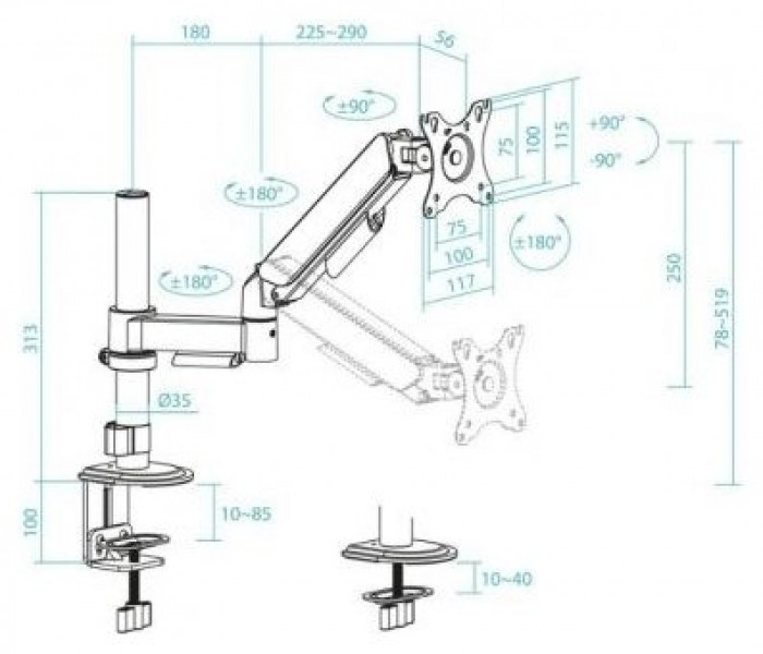 SOPORTE PANTALLA PARA MESA DOS BRAZOS 2 PANTALLAS 17-32 DE BRAZO INCLINABLE Y GIRATORIO 360º MA..