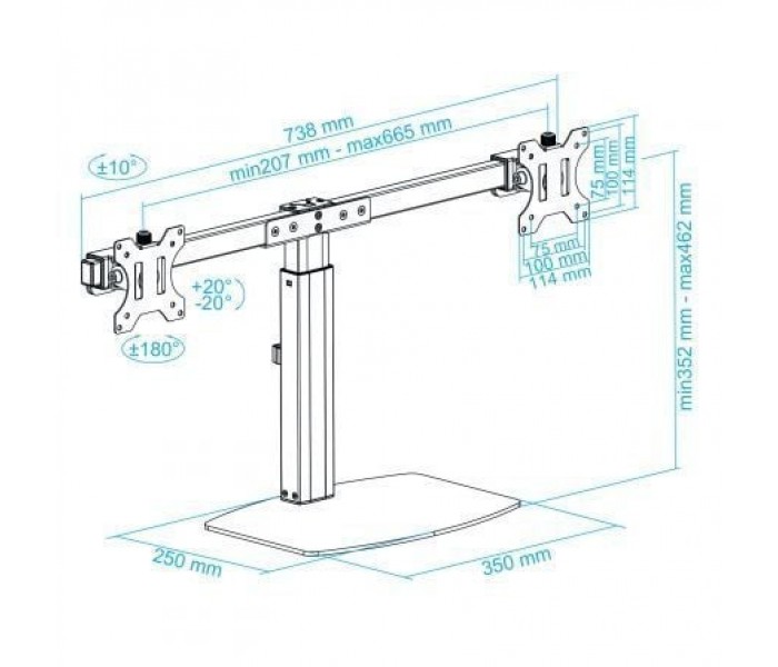 - Rango de ajuste para la altura del soporte: 352-462 mm