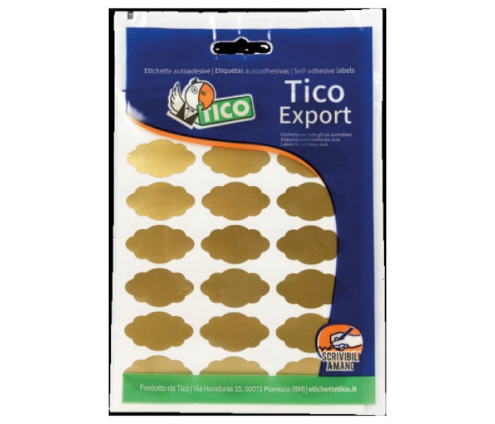 PAQUETE 10 HOJAS ETIQUETAS SATINADAS ORO 36X19 MM TICO E-GL-3619