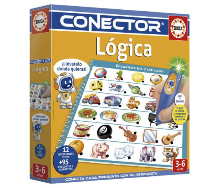 CONECTOR LOGIC (MULTI).- 12 temáticas nuevas para que los niños se diviertan y pongan a prueba su memoriay sentido lógico. Permite que el niño trabaje sus capacidades cognitivas y mejore su agilidad mental, además de desarrollar su sentido de la observación y su sentido lógico. Contenido: 6 láminas con 12 temáticas diferentes en formato libro. Lápiz de luz y sonido."