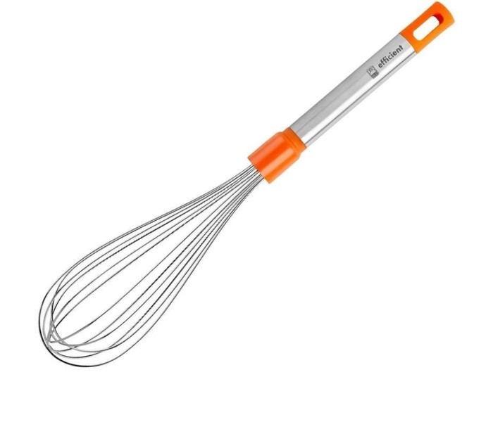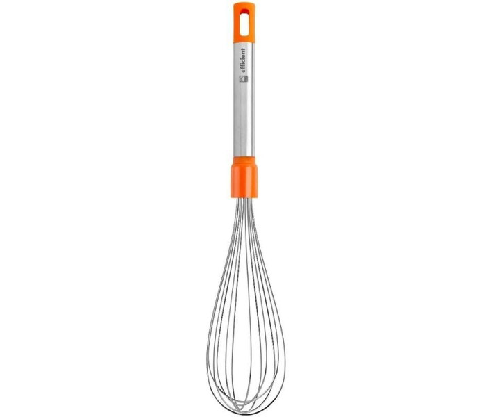 Batidor de la colección Efficient de gran calidad. Es una batidora de varillas de acero inoxidable ideal para batir, mezclar y remover las cremas, salsas o mezclas, ya sea en boles, ollas, sartenes o cazos. Las varillas son de acero inoxidable y el mango es de cómodo agarre.