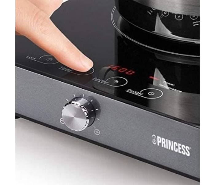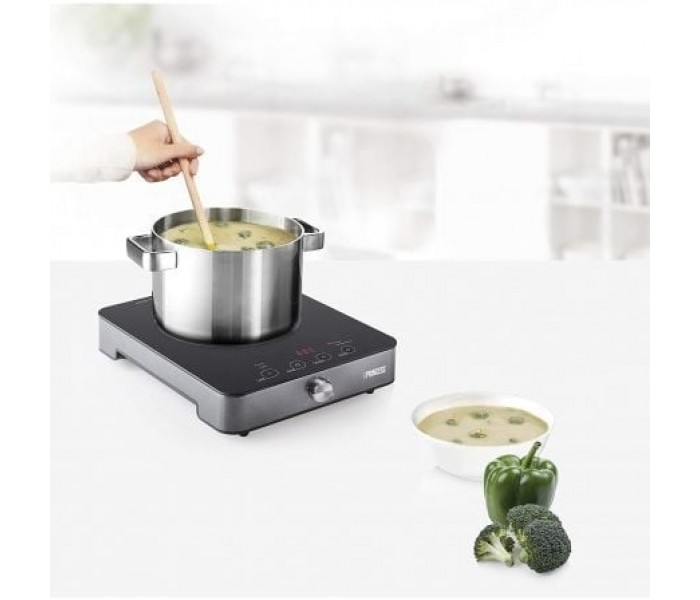 Para garantizar un uso seguro de la placa calefactora, la placa de inducción Princess cuenta con medidas de seguridad adicionales. La placa calefactora, que se apagará automáticamente si quita la sartén, cuenta además con protección contra sobrecalentamiento. La robusta base antideslizante garantiza que la placa calefactora no se mueva con facilidad. Además, la placa está fabricada con cristal de seguridad. La potencia total de la placa calefactora es de 1800 W, por lo que podrá conectarla en todas las tomas de corriente.Razones para escoger la placa calefactora de inducción Princess: