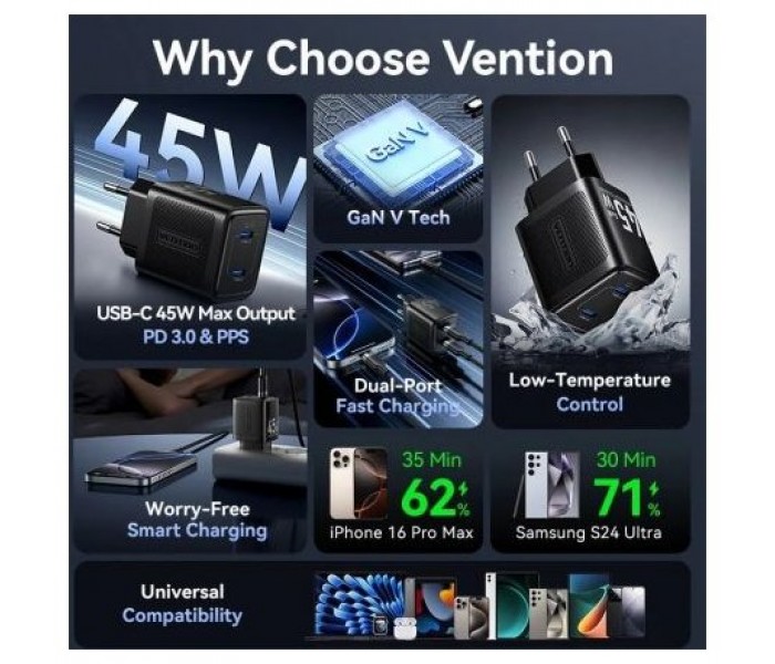 Cargador de Pared GaN Vention FEFB0-EU