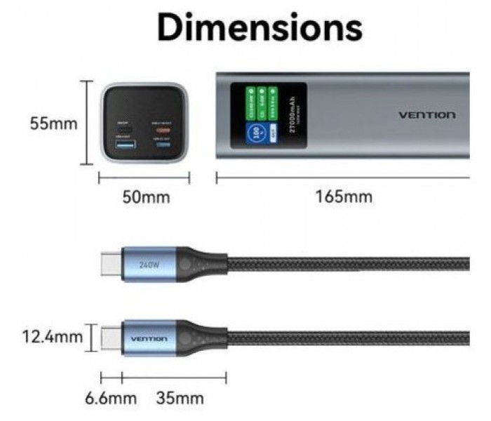 Powerbank 10000mAh Vention FKAL0-C/ 22.5W/ AzulVention 10000mAh Power Bank 22.5W 10000 mAh 22,5 W Ca..
