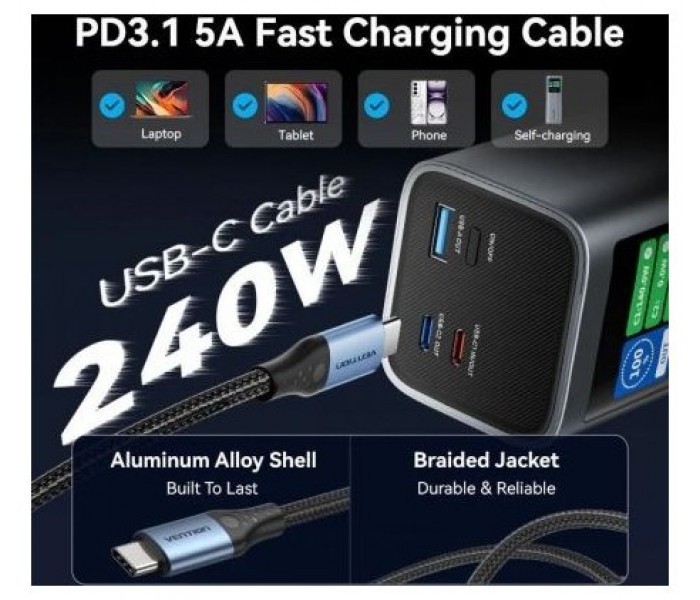 - Salida (USB-C1): 5V⎓3A; 9V⎓3A; 12V⎓3A; 15V⎓3A; 20V⎓5A; 28V⎓5A (140W máx)
