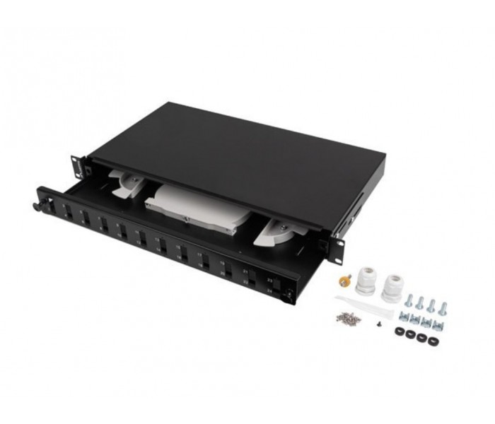 PATCH PANEL LANBERG 1U 19" FIBRA OPTICA 12 PTS SC DUPLEX O 12 LC QUAD BK+ACC