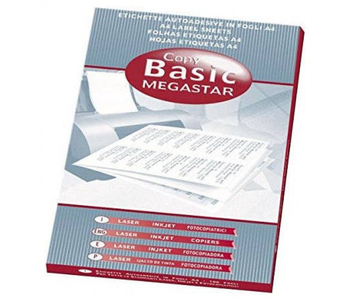 CAJA 100 HOJAS ETIQUETAS BLANCAS SIN MÁRGENES-LÁSER/INYECCIÓN DE TINTA/FOTOCOPIADORAS-210X148 MM MEGASTAR LP4MS-210148 (Espera 4 dias)