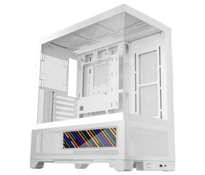 El panel inferior FULL MESH maximiza la refrigeración desde la base del equipo, optimizando el flujo interno y mejorando la eficiencia térmica de tu configuración. Un diseño pensado para reforzar la ventilación sin sacrificar la estética moderna de la caja.