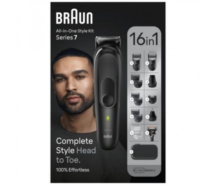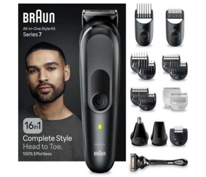 - Recortadora 16 en 1 Series 7 de Braun para afeitado de pies a cabeza: accesorios especializados para barba, nariz y orejas, recorte de pelo y rasurado masculino para todo el cuerpo.