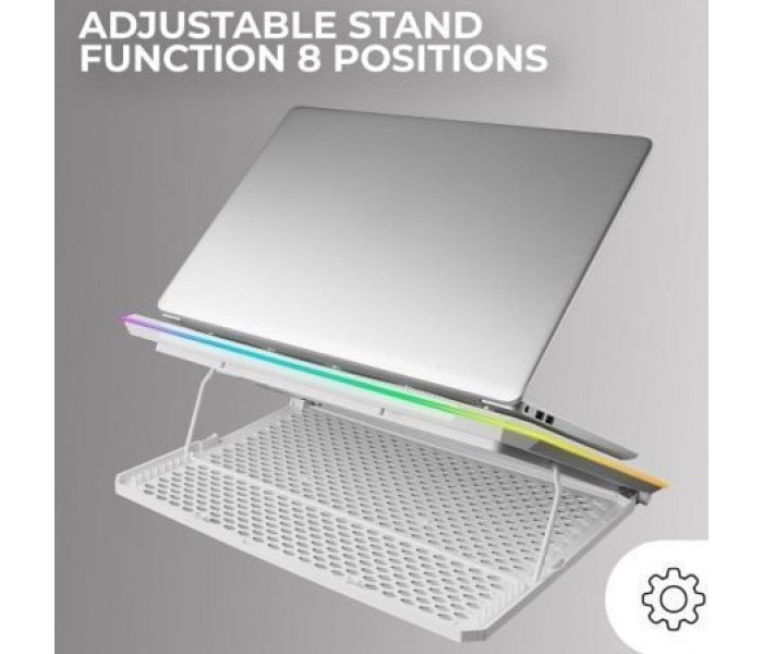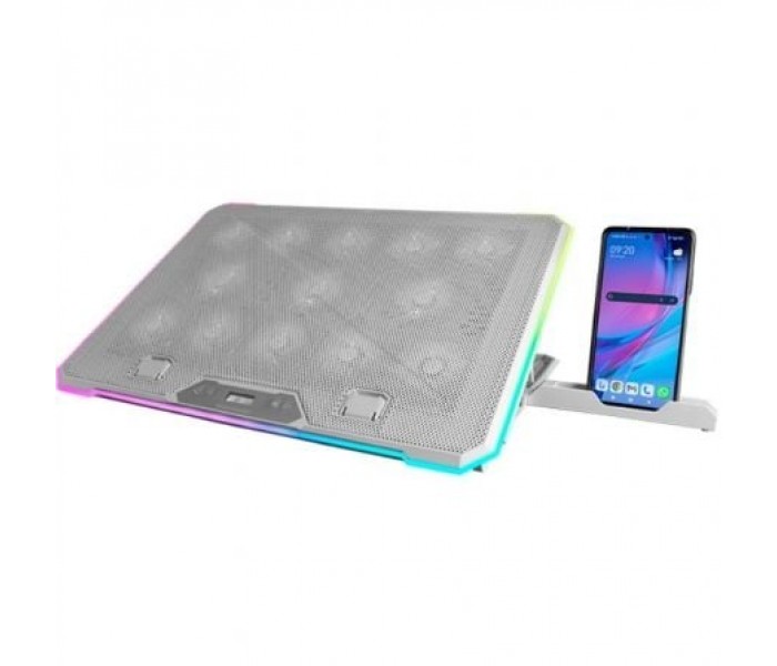 Descubre la MNBC13, la base de refrigeración definitiva para portátiles de hasta 17 pulgadas, diseñada para maximizar tu productividad y experiencia de juego. Con 13 ventiladores ultrasilenciosos y un sistema de iluminación RGB personalizable, ofrece una refrigeración avanzada y un estilo único. Su diseño ergonómico con función stand, pantalla LCD, y soporte para smartphone, junto con dos puertos USB, la convierten en una herramienta esencial para tu escritorio.. . Características principales:. . REFRIGERACIóN AVANZADA PARA PORTáTILES. Experimenta una refrigeración extrema con la base para portátil MNBC13, la aliada perfecta para portátiles de hasta 17 pulgadas. Equipada con 13 ventiladores ultrasilenciosos con iluminación LED blanca, garantiza que tu ordenador permanezca fresco durante maratones de trabajo o gaming, evitando el sobrecalentamiento y prolongando la vida útil de tu equipo.. . ESTILO Y PERSONALIZACIóN RGB. Transforma tu setup con la MNBC13 y su sistema de control de iluminación RGB. Elige entre 10 modos de iluminación dinámicos RGB LED para crear una atmósfera vibrante y personalizada en tu espacio de juego o trabajo, haciendo que cada sesión sea única.. . DISEñO ERGONóMICO CON FUNCIóN STAND. La base de refrigeración MNBC13, con sus 8 niveles de inclinación ajustables, está diseñada para mejorar tu postura y ergonomía. Ideal para cualquier entorno, sus pads antideslizantes aseguran la máxima estabilidad de tu portátil, evitando deslizamientos y movimientos indeseados.. . CONTROL TOTAL CON PANTALLA LCD. Ajusta la velocidad de los ventiladores y elige tu modo de iluminación favorito con facilidad gracias a la pantalla LCD integrada de la base refrigeradora MNBC13. Además, la función de memoria garantiza que tus configuraciones se mantengan, proporcionando una experiencia personalizada en cada uso.. . SOPORTE PARA SMARTPHONE. La MNBC13 no solo refrigera tu portátil, sino que también incluye un práctico soporte para smartphone. Esto la convierte en una herramienta esencial y versátil para tu escritorio, facilitando la multitarea y manteniendo tus dispositivos más importantes al alcance de tu mano.. . CONECTIVIDAD AMPLIADA. La base MNBC13 eleva la funcionalidad con sus 2 puertos USB integrados, esenciales para conectar tus periféricos adicionales como el teclado o ratón. La MNBC13 se convierte así en una solución integral, combinando una eficiente refrigeración y conectividad expandida, ideal para maximizar tu productividad y experiencia de juego.. . Especificaciones:. . Dimensiones: 415x298x30mm. Peso: 1300g. Iluminación: LED blanco (13x ventiladores). Materiales: Estructura Acero, ABS, Rejilla Aluminio. Función stand: Sí, altura regulable en 8 posiciones. Extras: Soporte para móviles / Plegable. Puertos USB: 2. Botón ON/OFF: Sí. Aplicación: Hasta 17"". Conexión: USB 2.0. Nº de ventiladores: 13. Voltaje: DC 5V. Corriente: 1.8A