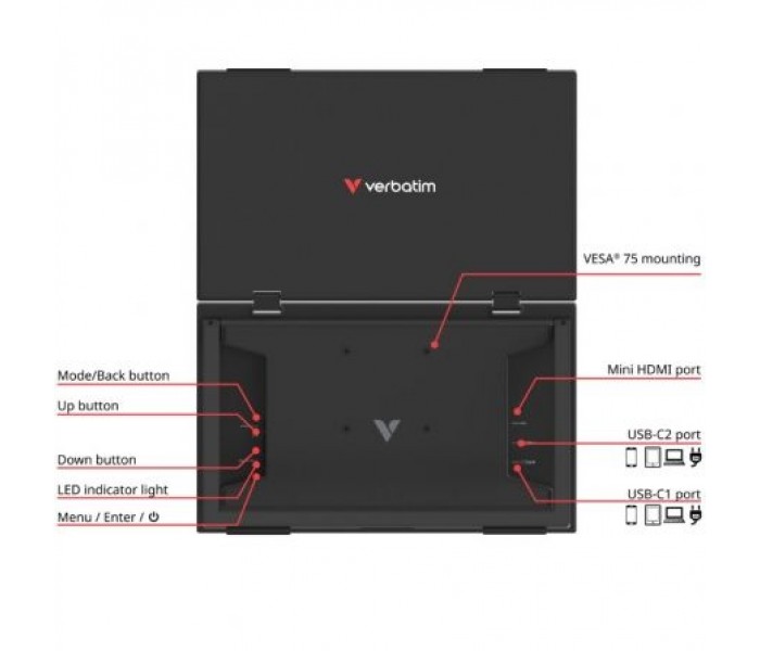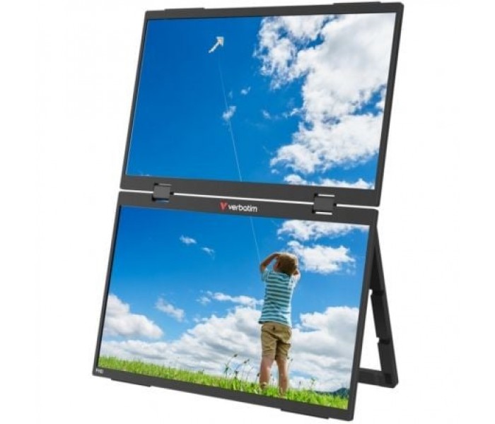 Independientemente de si estás en la oficina, trabajando desde casa o de viaje, el monitor portátil de 15,6" FHD Dual Monitor Essentials de Verbatim ofrece una solución flexible y compacta para ampliar tu espacio de trabajo. Con dos pantallas apiladas verticalmente y compatibilidad con varios modos de visualización -incluidos Extend*, Duplicate y Ultra Mode (sólo Windows)- se adapta perfectamente a tu flujo de trabajo. Maximiza tu productividad sin renunciar al espacio, gracias a su diseño delgado y ligero.