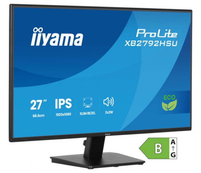 iiyama ProLite X2792HSU-B1. Diagonal de la pantalla: 68,6 cm (27"), Resolución de la pantalla: 1920 x 1080 Pixeles, Tipo HD: Full HD, Tecnología de visualización: LED, Tiempo de respuesta: 3 ms, Relación de aspecto nativa: 16:9, Ángulo de visión, horizontal: 178°, Ángulo de visión, vertical: 178°. Altavoces incorporados. Conector USB incorporado, Versión de conector USB: 3.2 Gen 1 (3.1 Gen 1). montaje VESA. Color del producto: Negro