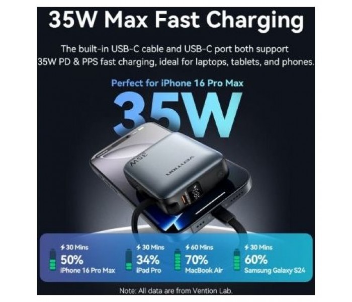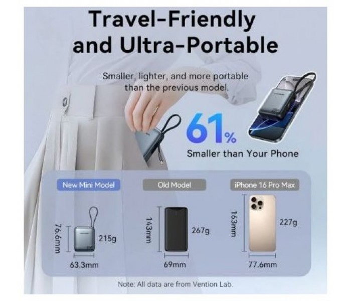 Powerbank 4800mAh Vention FHQB0/ 22.5W/ Negra/ Incluye Cable USB Tipo-C y LightningPowerbank 4.800mA..