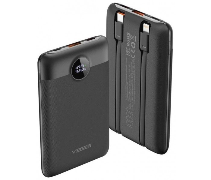 CARGADOR POWERBANK VEGER C11 10000MAH SMALL 22W VG-W1170 WITH CABLES BUILT BLACK