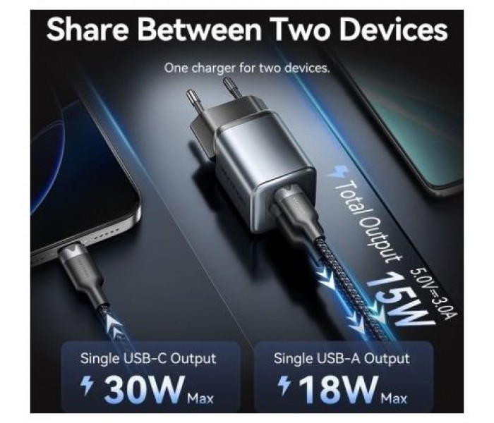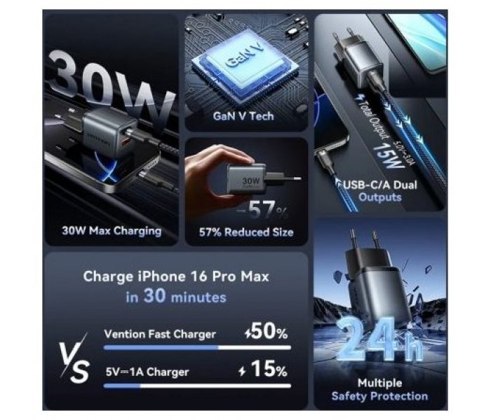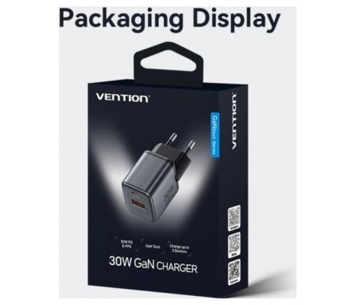 Vention Cargador GaN de 2 puertos USB (C+A) (30 W/18 W) con enchufe UE
