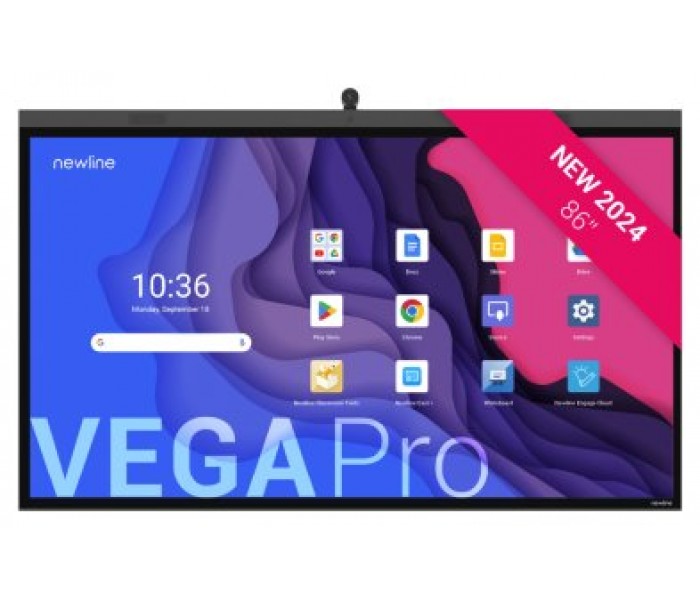NEWLINE MONITOR INTERNATIVO VEGA (TT-8624Z) 86", ANDROID 13, CAPACITIVO P-CAP, CAMARA 4K, 8 MIC, MULTI USUARIO, 2X20W+SUB15W, WIFI 6 + BL, USB-C 100W, 8GB Y 128GB, 32 PT, NEWLINE APPS, OPS PC Y SDM OPCIONAL, 5 AÑOS DE GARANTIA ON SITE.