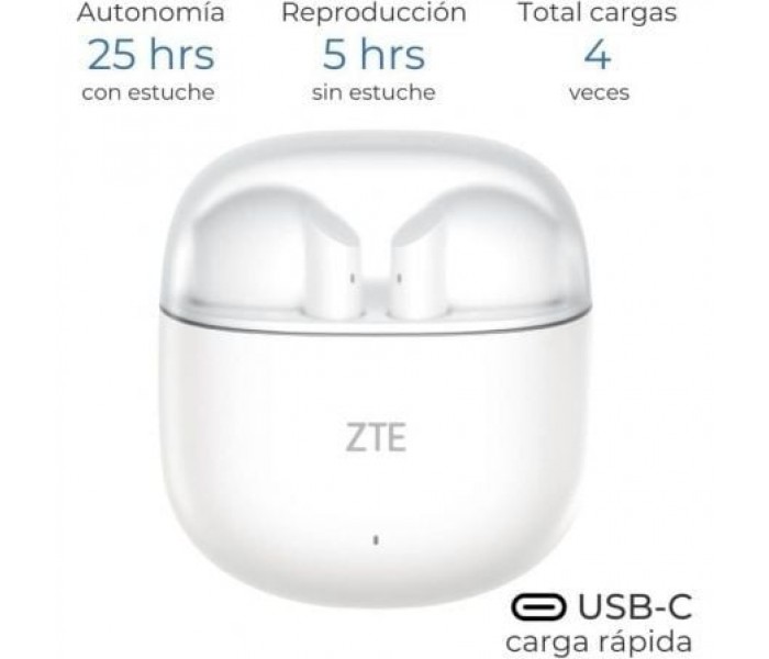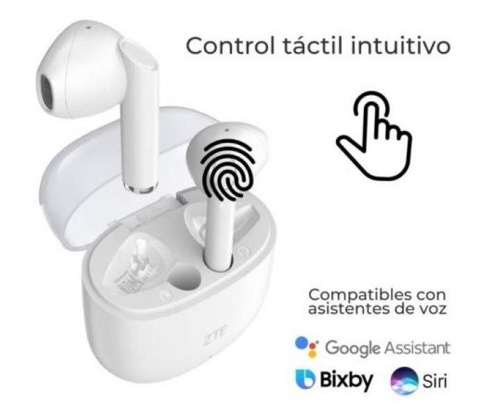 ZTE Buds. Tipo de producto: Auriculares. Tecnología de conectividad: Inalámbrico, Bluetooth. Uso recomendado: Llamadas/Música, Color del producto: Blanco.