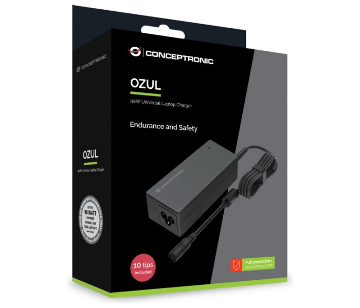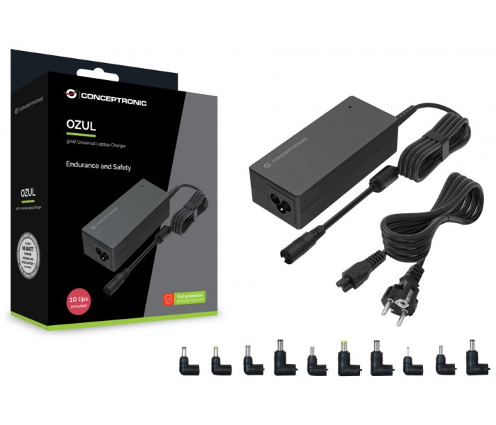 CONCEPTRONIC OZUL08B Cargador universal para portatil de 90W, 10 puntas de carga incluidas
