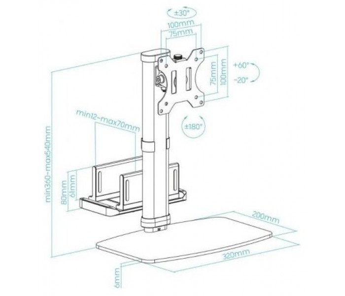 Soporte de mesa para pantallas 17”-27” con soporte integrado para CPU Ligera