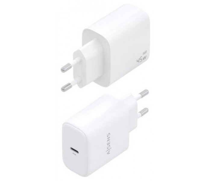 Cargador de Pared GaN Aisens A110-0971/ 1xUSB Tipo-C/ 1xUSB/ 45W/ BlancoA110-0971 – Cargador GaN 45W..
