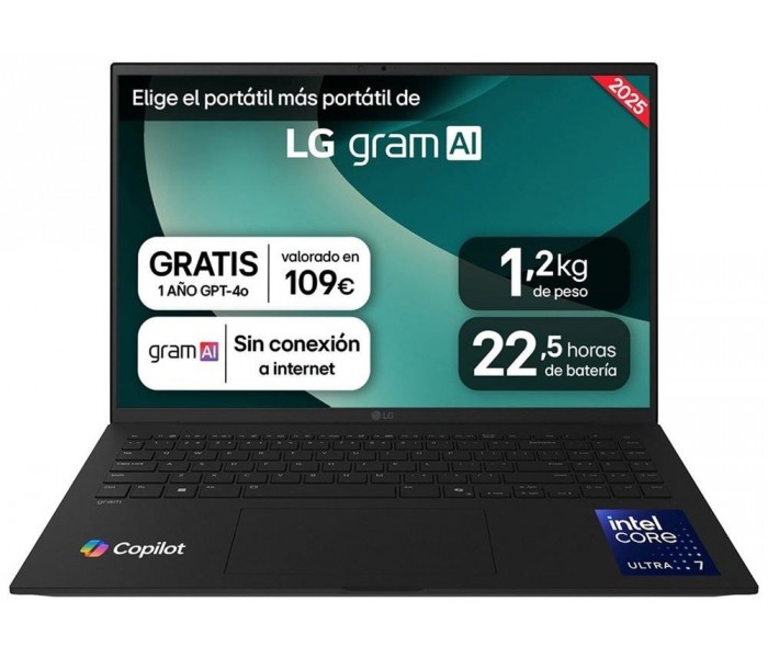 PORTATIL LG GRAM, 16", 16ZD90T, INTEL CORE ULTRA 7, 40,6 CM, 2560 X 1600 PIXELES, 16 GB, 1 TB, FREEDOS (Espera 4 dias)