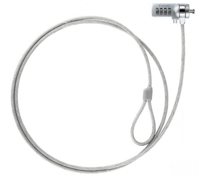 Especificaciones:. . Universal y fácil de usar. Cable de acero de 1.5 metros de longitud y 4.5mm de diámetro. Bloqueo con combinación de 4 dígitos. Válido para pantallas y dispositivos con ranura de seguridad tipo Kensington. Material del candado: acero galvanizado con revestimiento de vinilo transparente y llave de aleación de zinc. Color: Plata. Peso neto: 0,13 kg. Peso bruto: 0,16 kg. Medidas del embalaje: 210x150x30 mm