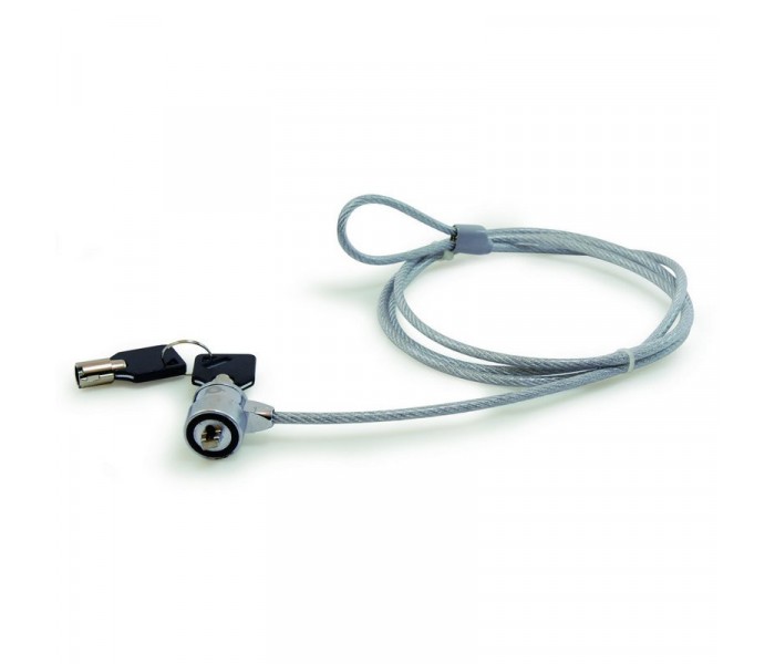 Especificaciones:. . Universal y fácil de usar. Cable de acero de 1.5 metros y 4.5 mm de diámetro. Bloqueo con cerradura de seguridad. Incluye dos llaves de seguridad. Válido para portátiles, monitor, televisiones y dispositivos con ranura de seguridad tipo Kensington. Materiales: Cable de acero galvanizado con revestimiento de vinilo transparente. Color: Plata. Peso neto: 0,14 kg. Peso bruto: 0,15 kg. Medidas del embalaje: 210x150x30 mm
