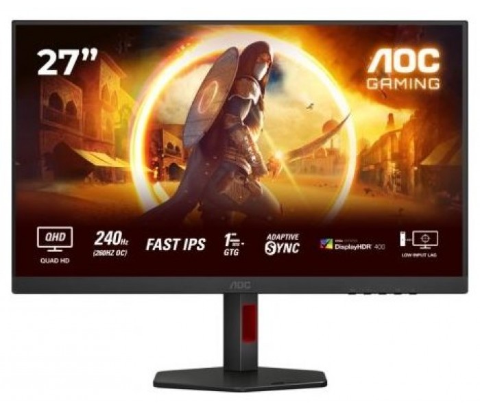 Monitor gaming plano de 27″ con panel Fast IPS y resolución QHD (2560 × 1440). Ofrece hasta 240 Hz de refresco (260 Hz con overclock), 1 ms GtG y 0,3 ms MPRT, brillo de 400 cd/m² y certificación VESA DisplayHDR 400. Incorpora Adaptive Sync y compatibilidad NVIDIA G-SYNC Compatible, además de Low Blue Mode y Flicker Free. Diseño sin marco en 3 lados, altavoces integrados y soporte ergonómico con altura, giro, pivote e inclinación. VESA 100 × 100.