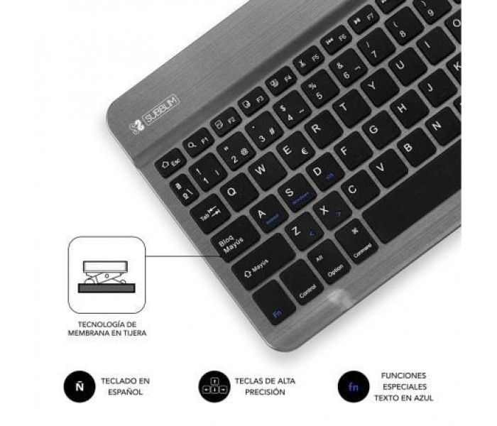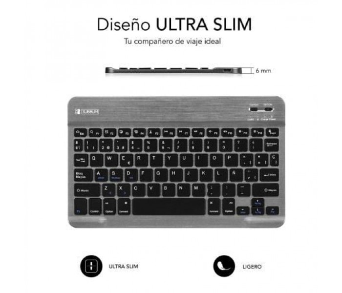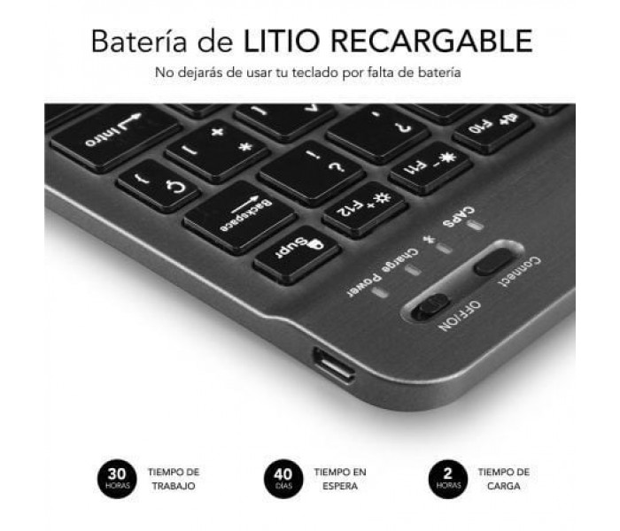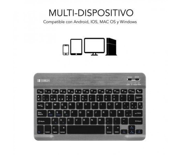 Especificaciones:. . Diseño ultradelgado. Teclas de alta precisión. Ahorro de energía. Conector BT y encendido. Batería Li-ion recargable. Soft Touch. Voltaje funcionamiento 3.7v. Corriente de trabajo <5mA. corriente en espera <1mA. tiempo en espera: 40-45 días. Tiempo de trabajo: 30 horas. Vida de las teclas: 5 millones de presiones. Batería 420mAh. . Requerimientos sistema:. . PC: Windows 7 / 8 / 10. Mac: Mac OS X 10.10 o superiores. Android Tablet PC o Smartphone. apple iPad / iPhone IOS 5 o superior. Apple TV. . *Para el correcto funcionamiento debe sincronizar el teclado al Sistema Operativo en uso, mediante la combinación de teclas:. FN + A / FN + S / FN + D. .