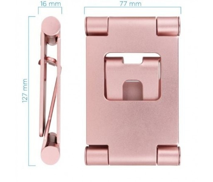 | Características | - Soporte de mesa ajustable y giratorio para teléfono / tablet de hasta 10” - Material: Fabricado en aleación de aluminio - Dispone de almohadillas de silicona antideslizantes, para proteger de arañazos y deslizamientos. - Plegado compacto del soporte para facilitar su guardado y transporte. - Medidas del producto plegado: 77 x 127 x 16 mm - Color: Rosa - Peso: 0,218 kg |