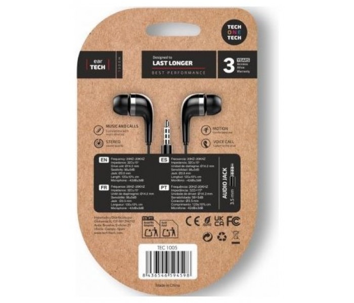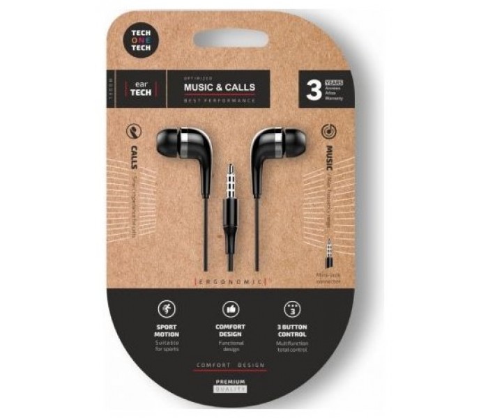 Auriculares soft earTECH ergonómicos, sonido estéreo, con micrófono, controles de volumen y tercer botón multifunción.