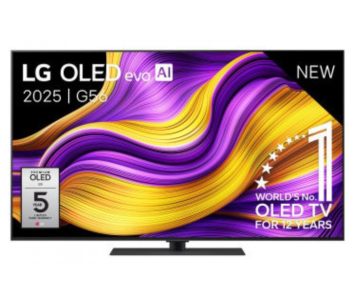 LG OLED evo AI OLED55G56LS. Diagonal de la pantalla: 139,7 cm (55"), Resolución de la pantalla: 3840 x 2160 Pixeles, Tipo HD: 4K Ultra HD, Tecnología de visualización: OLED evo, Forma de la pantalla: Plana. Smart TV. Tecnología de interpolación de movimiento: Movimiento OLED, Tiempo de respuesta: 0,1 ms, Relación de aspecto nativa: 16:9. Formato de señal digital: DVB-S2, DVB-C, DVB-T, DVB-T2, DVB-S. Wifi, Ethernet. Color del producto: Negro