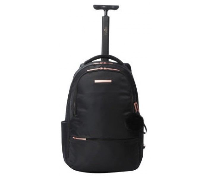 Mochila de viaje femenina, ideal para cabina. Se puede usar como mochila o con ruedas. Diseñada para llevar hasta tres mudas completas. Apertura de 180 grados, bolsillos frontales (uno con organizador y portallaves), bolsillo para pasaporte y compartimento principal con correas de compresión y bolsillo con cremallera en malla. Incluye bolsillo para portátil de 15" con mosquetón de seguridad.